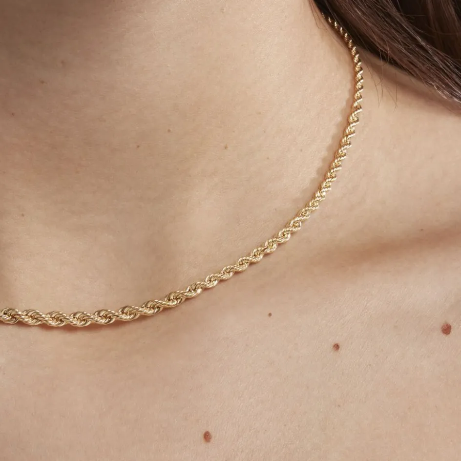 Collier Or Jaune 375/1000 Chute Maille Corde Largeur De 2.1mm A 3.8mm 42cm