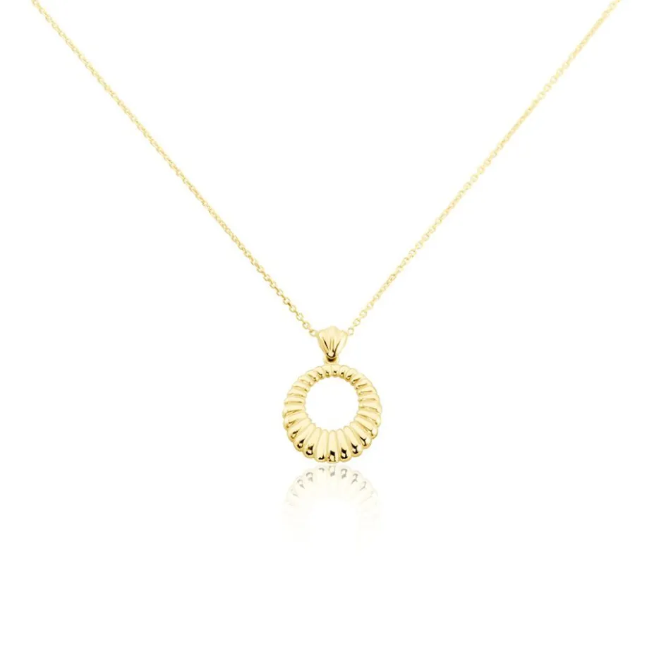 Collier Or Jaune 375/1000 Cercle Ajoure Cisele Maille Jaseron 40+2cm