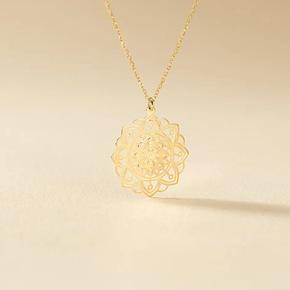 Collier Or Jaune 375/1000 Motif Rosace Maille Jaseron 42cm
