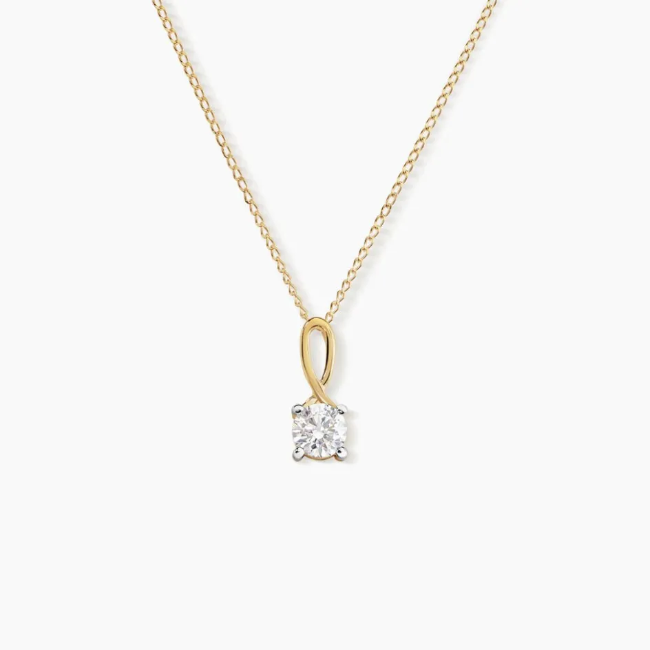 Collier Or Jaune 375/1000 Solitaire Oxyde De Zirconium 4 Griffes Bélière Entrelacée 45cm
