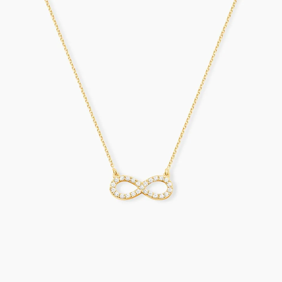 Collier Or Jaune 375/1000 Forme Infini Et Oxydes De Zirconium 42cm
