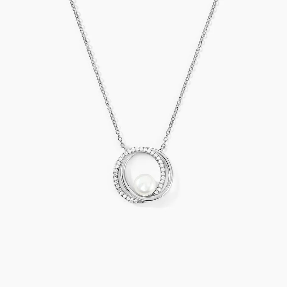 Collier Argent Blanc 925/1000 Perle De Culture Nacre Forme Ronde 6.5/7mm Et Oxydes De Zirconium
