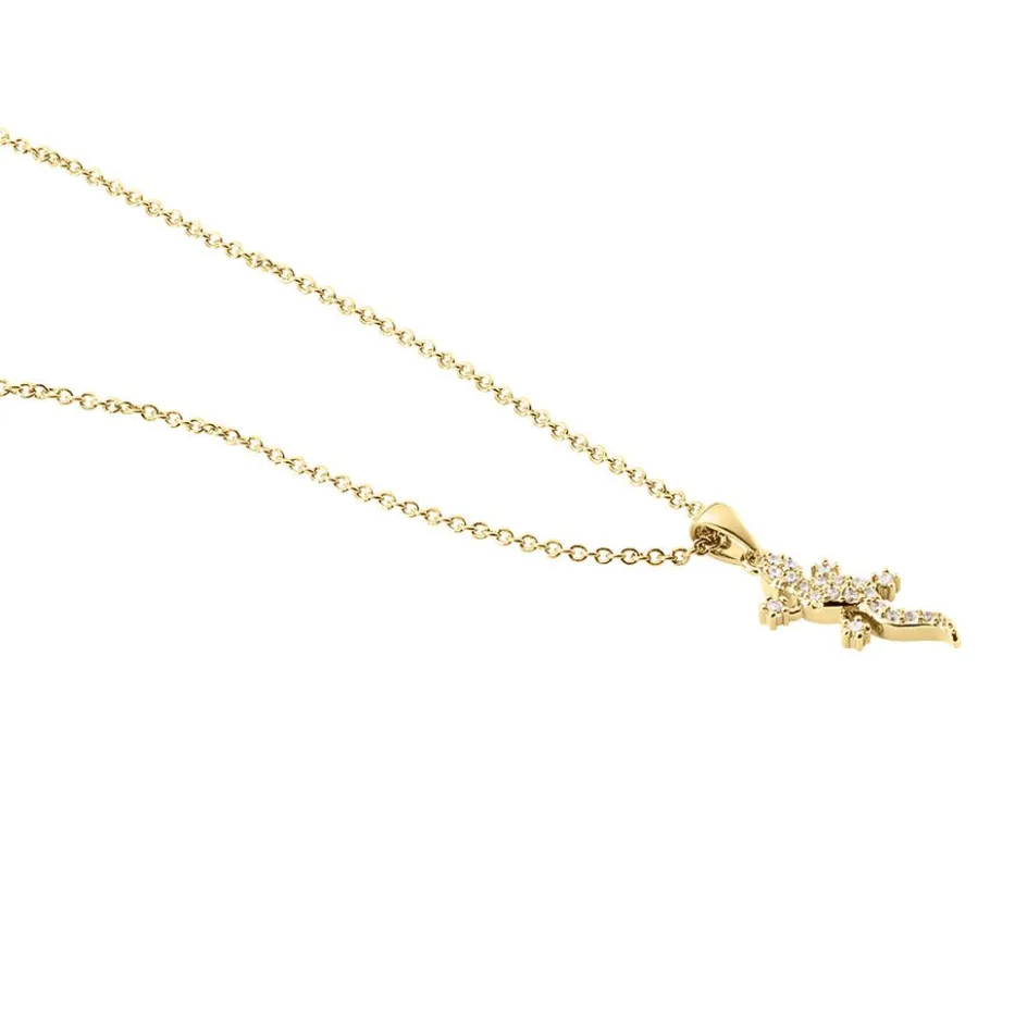 Collier Plaqué Or Jaune Salamandre Pavage Oxydes De Zirconium Maille Forcat 40+4cm