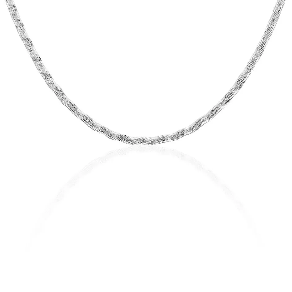 Collier Argent Blanc 925/1000 Maille Heringbone Ondulee Diamantee Largeur 3.3mm 42cm