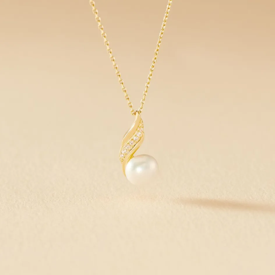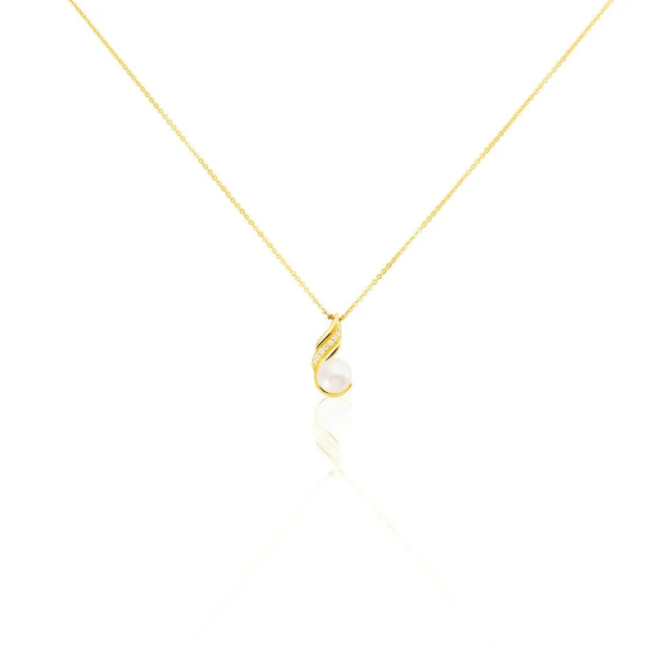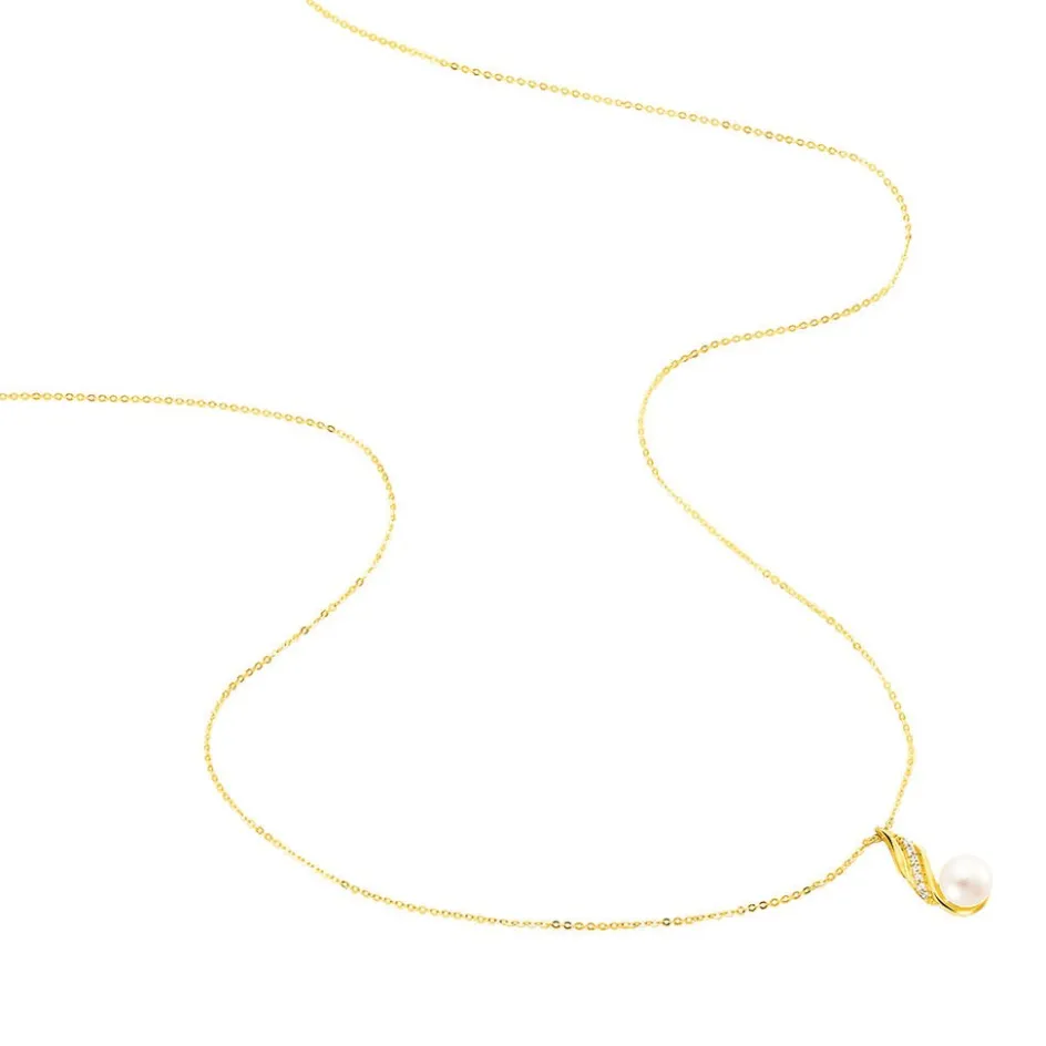Collier Or Jaune 375/1000 Perle De Culture Nacre 6mm Et Oxydes De Zirconium 43cm