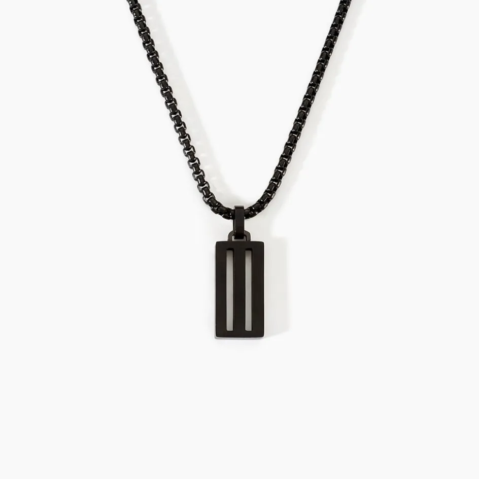 Collier Acier Inoxydable Noir Rectangle Bandes Ajourees Maille Venitienne Largeur 2.5Mm 50+5Cm