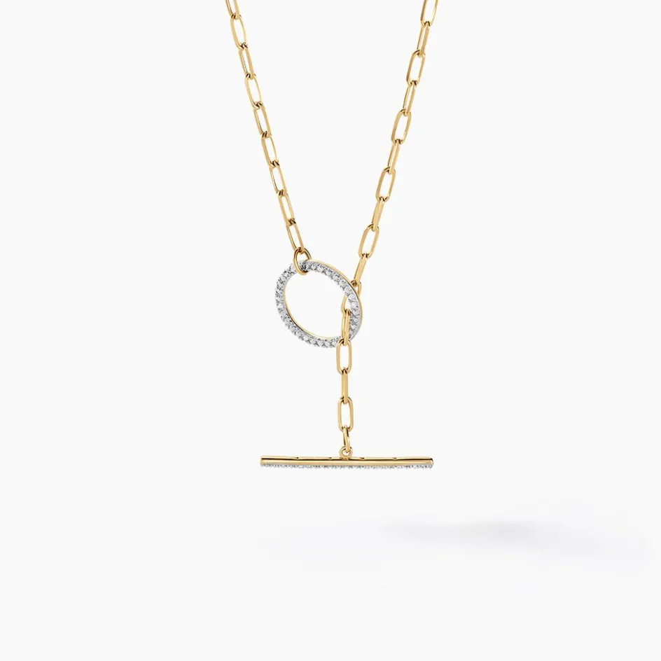 Collier Or Jaune 375/1000 Cercle Ajouré Diamants 0.023cts Maille Cheval 42cm