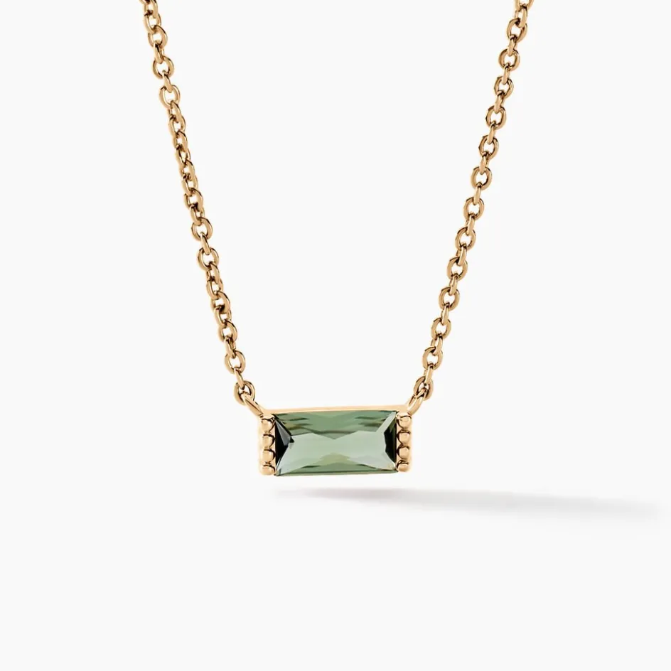 Collier Plaqué Jaune Rectangle Pierre De Synthese Verte Maille Jaseron 42+2cm