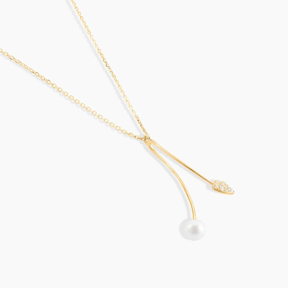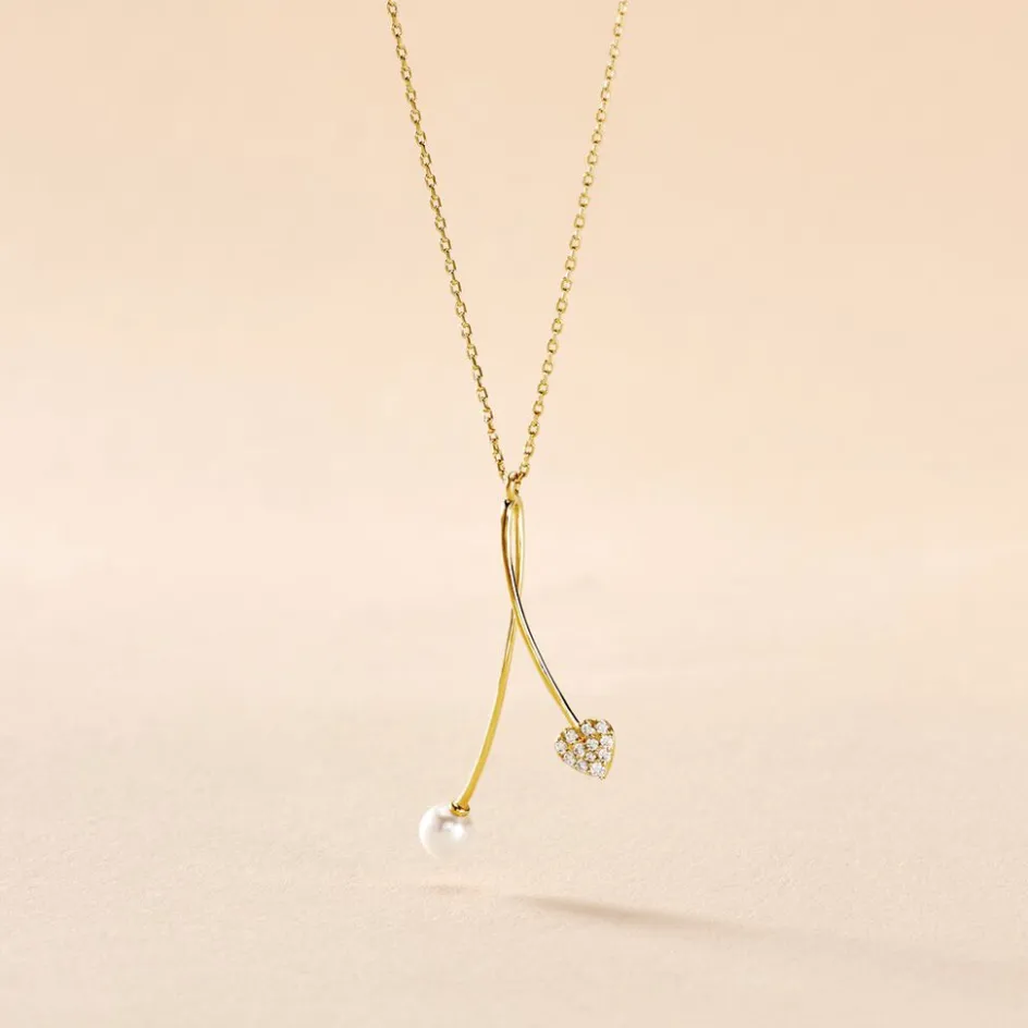 Collier Or Jaune 375/1000 C艙ur Entrelace Pavage Oxydes De Zirconium Et Perle De Culture 4/4.5mm 43cm