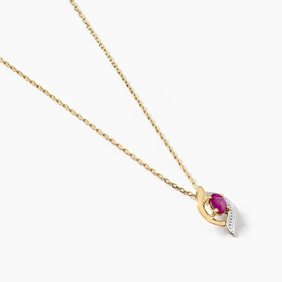 Collier Or Jaune 375/1000 Rubis Ovale Serti 4 Griffes