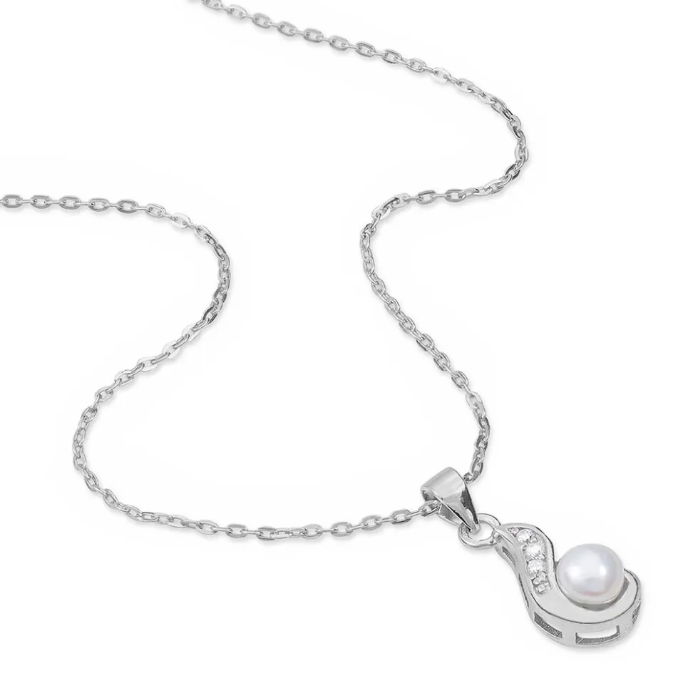 Collier Argent Blanc 925/1000 Perle De Culture Nacre Oxydes De Zirconium Chaine Maille Forcat 42cm
