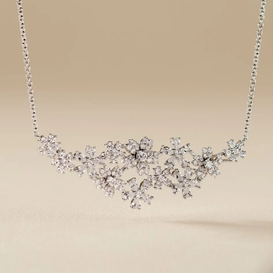 Collier Argent 925/100 Floral Oxydes De Zirconium Maille Forcat 42+3cm