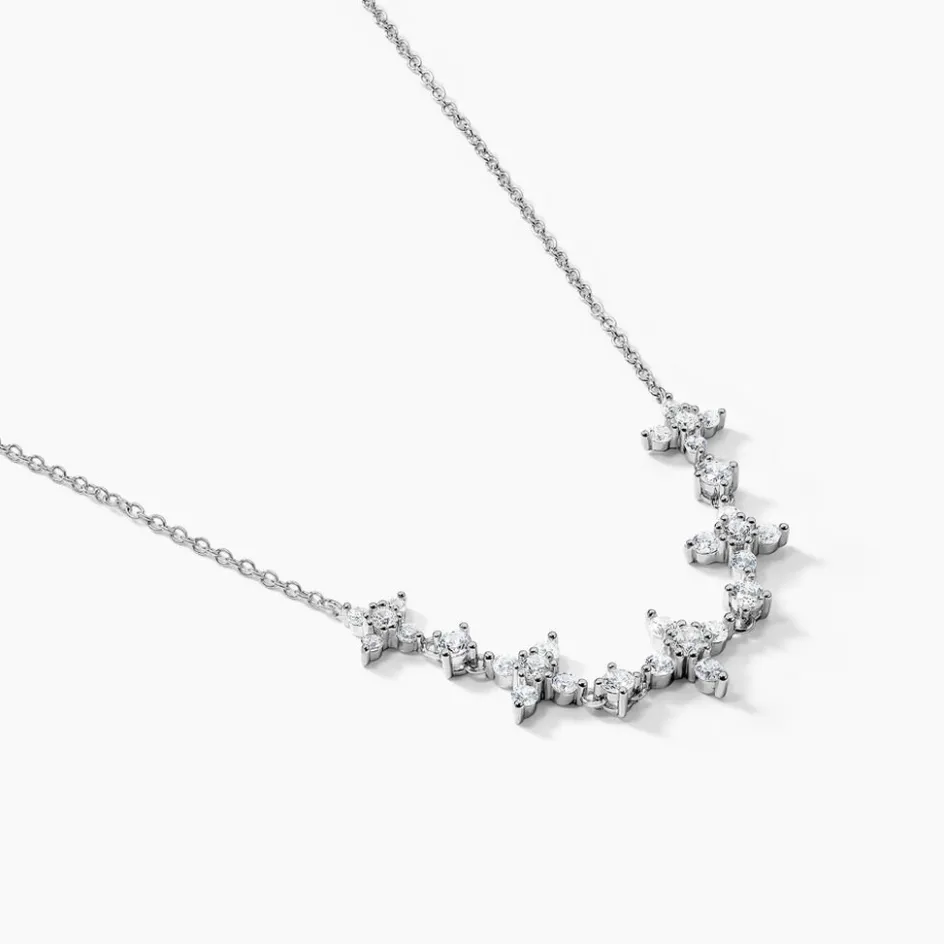 Collier Argent 925/1000 Floral Oxydes De Zirconium Maille Forcat 45cm