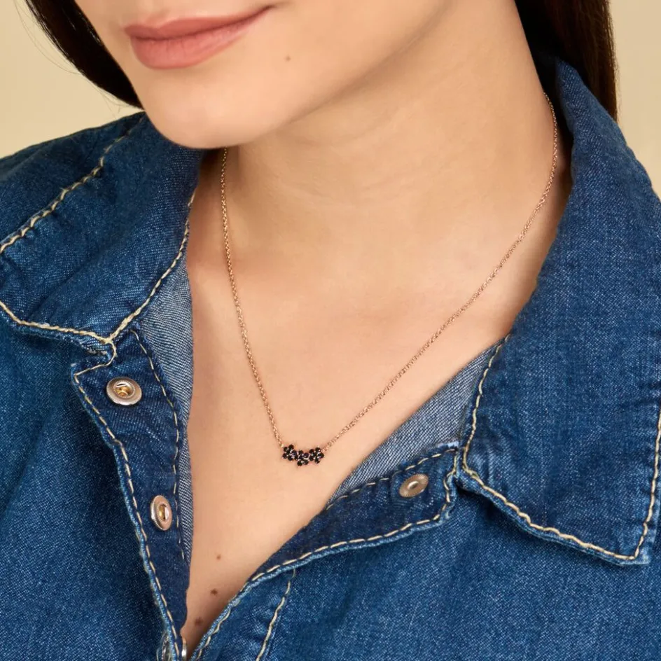 Collier Plaqué Or Jaune Triple Fleurs Oxydes De Zirconium Noirs Maille Forçat 42+3cm