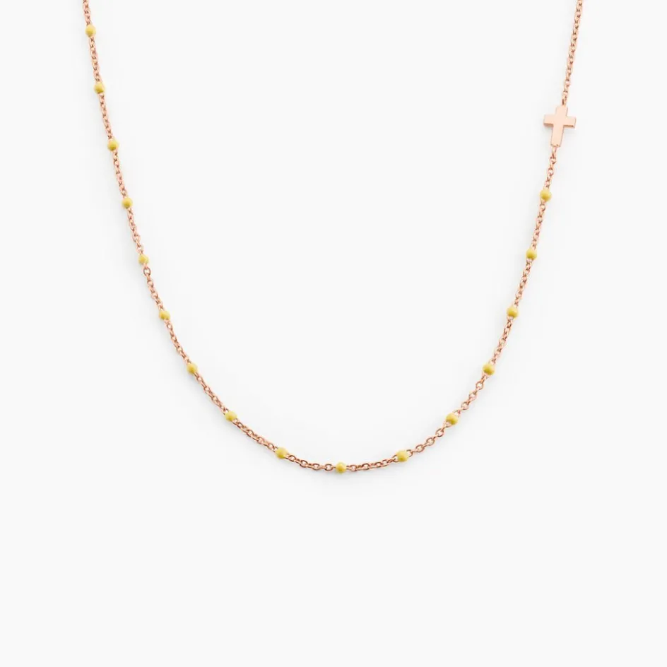 Collier Argent Rose 925/1000 Croix Boules émail Maille Jaseron 42+3cm