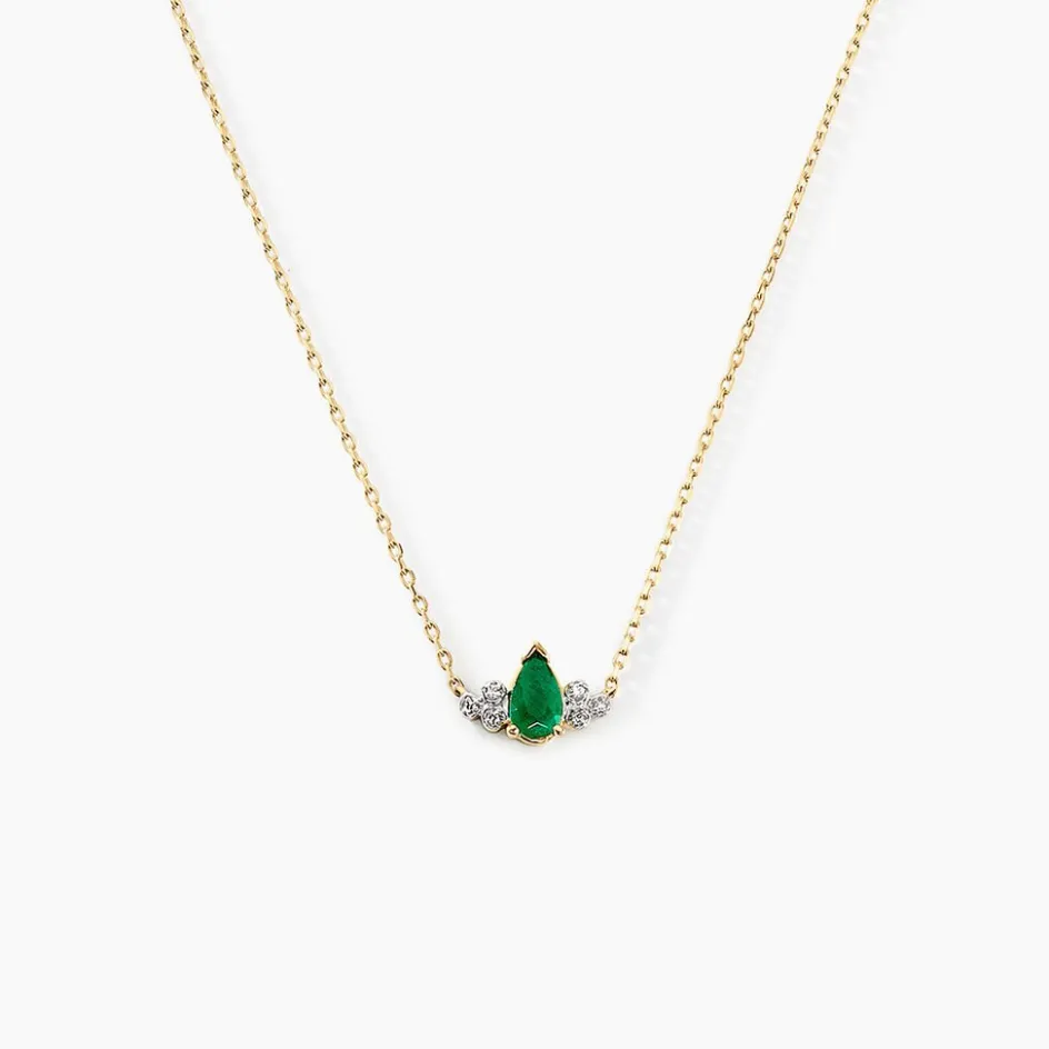 Collier Or Jaune 375/1000 Goutte Emeraude 0.20cts Serti Griffes Accompagnée Pavage Diamants Maille Forcat 40+2cm