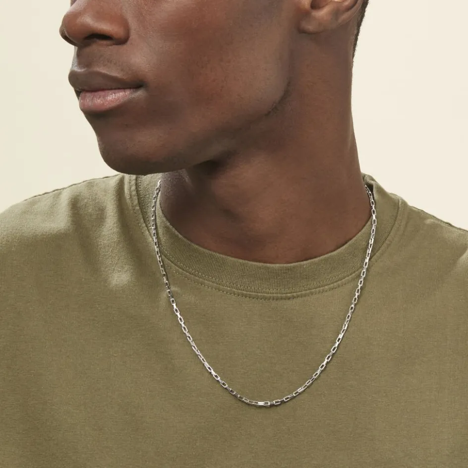 Collier Argent Blanc 925/1000 Maille Cheval Epaisseur 2.6*1.2mm 55cm