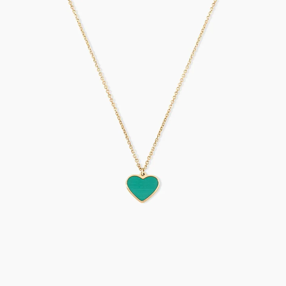 Collier Or Jaune 375/1000 C艙ur Malachite Verte Maille Jaseron 40+2Cm