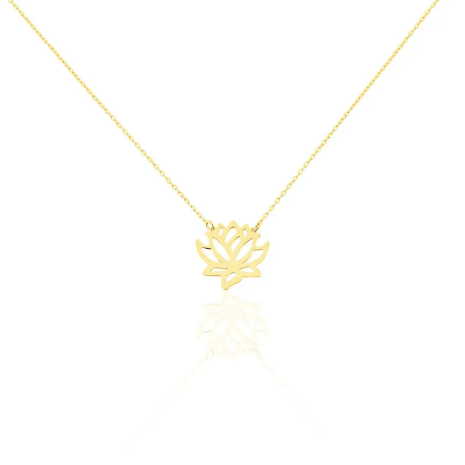 Collier Or Jaune 375/1000 Fleur De Lotus Ajouree Maille Forcat 45cm