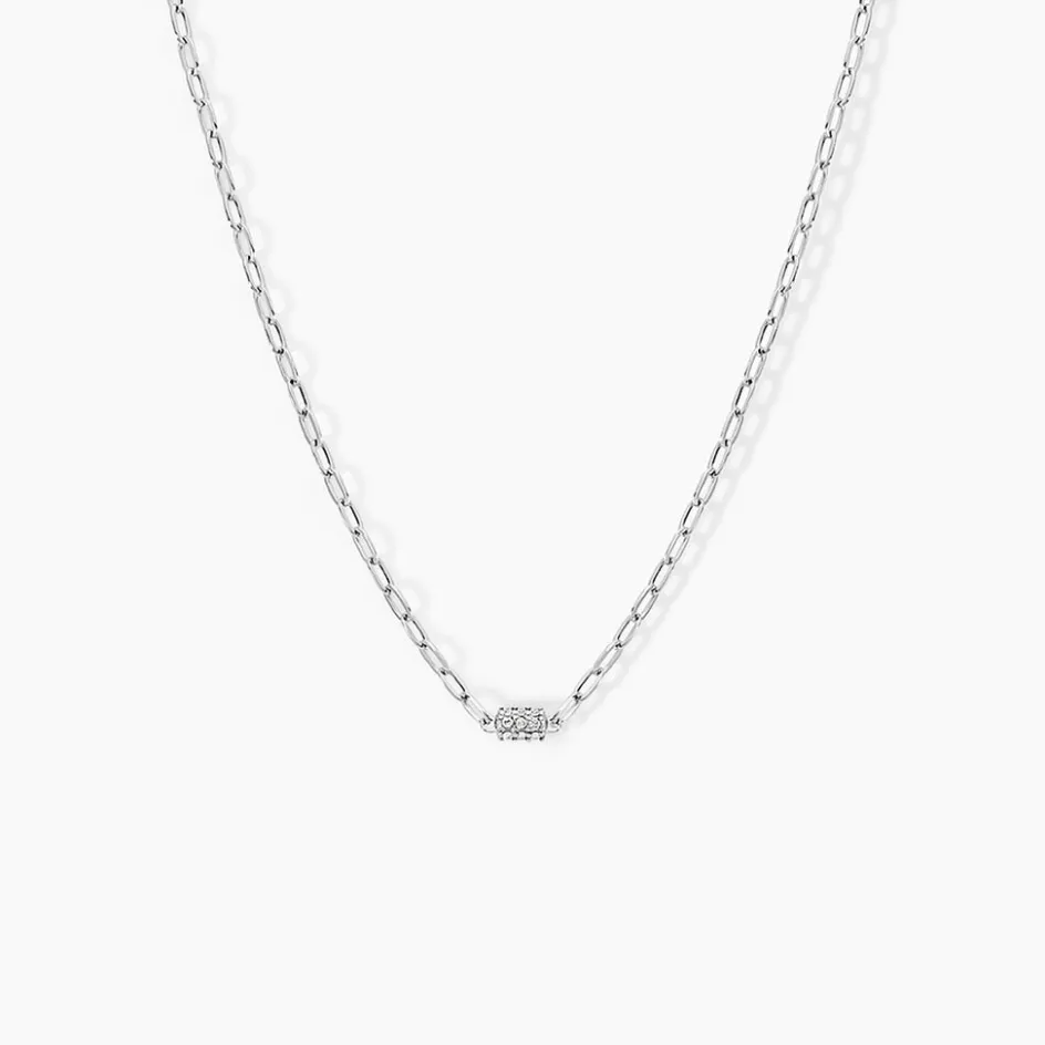 Collier Argent 925/1000 nexus Talisman Oxydes De Zirconium Maille Forçat épaisse 37+3cm