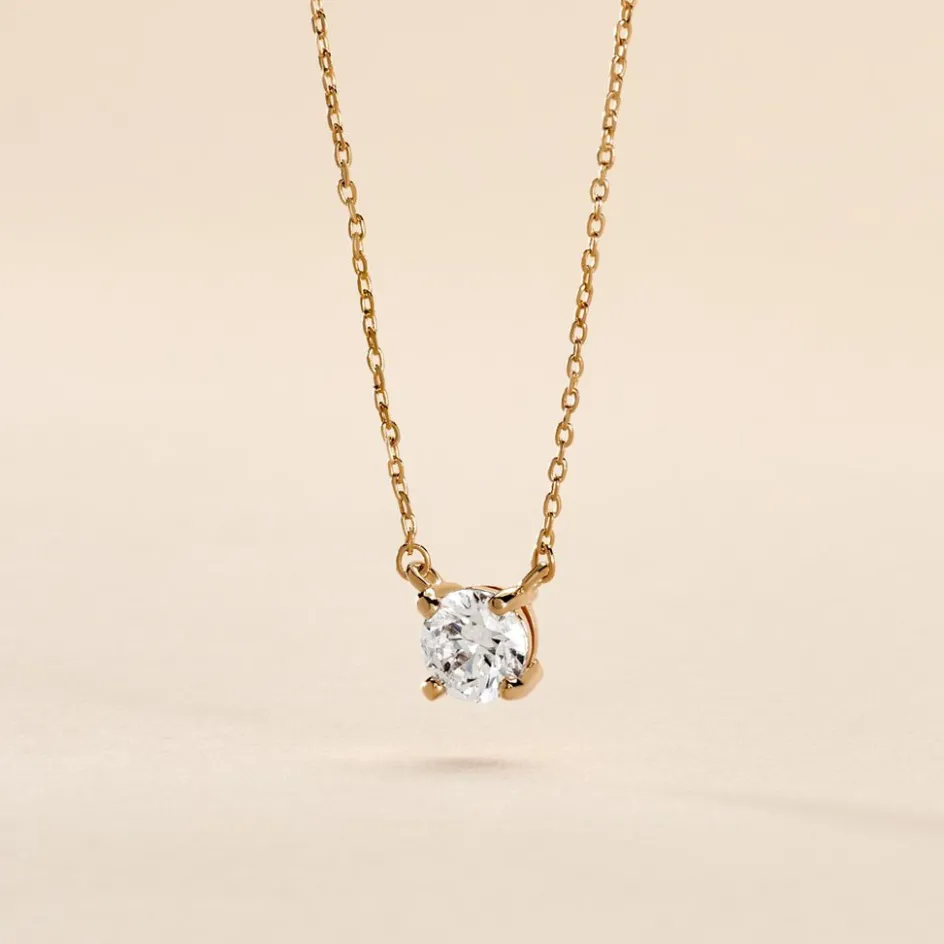 Collier Plaque Or Oxyde De Zirconium 6mm 4 Griffes Mailles Forcat 45cm