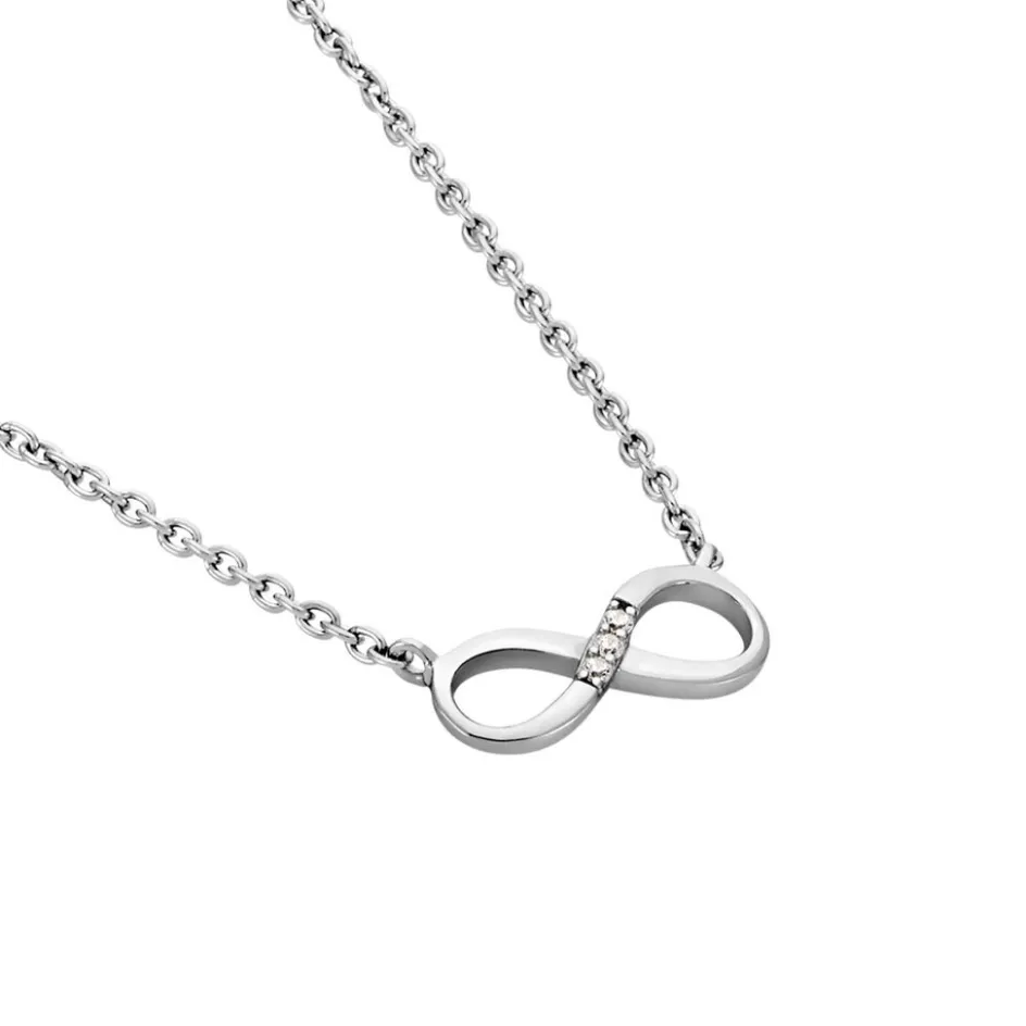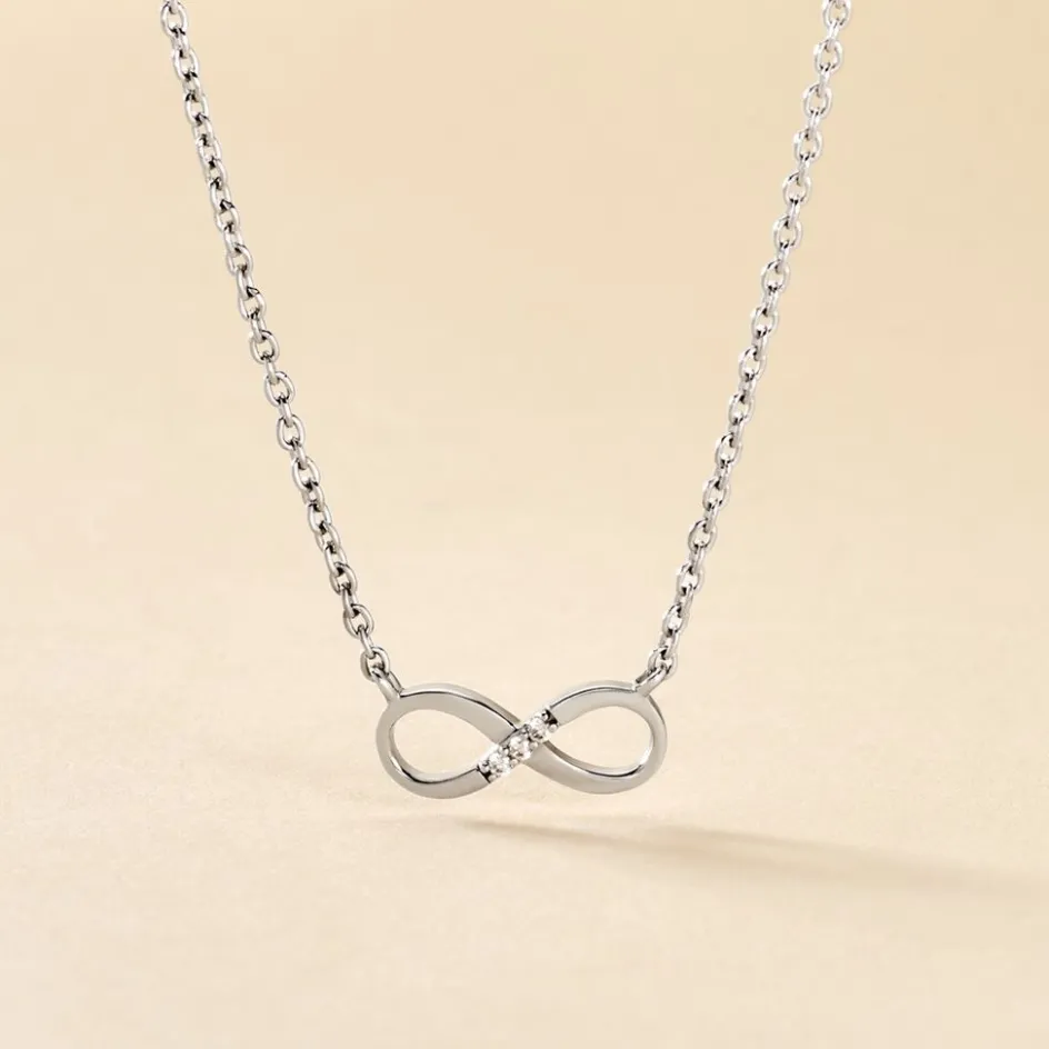 Collier Argent Blanc 925/1000 Motif Infini Oxydes De Zirconium Maille Forçat 45cm