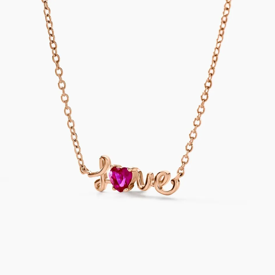 Collier Argent Rose 925/1000 C艙ur Message Love Oxyde De Zirconium Fuchsia Serti 4 Griffes Maille Forçat 42+3cm