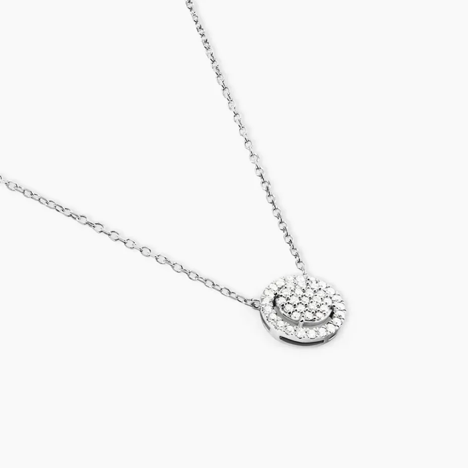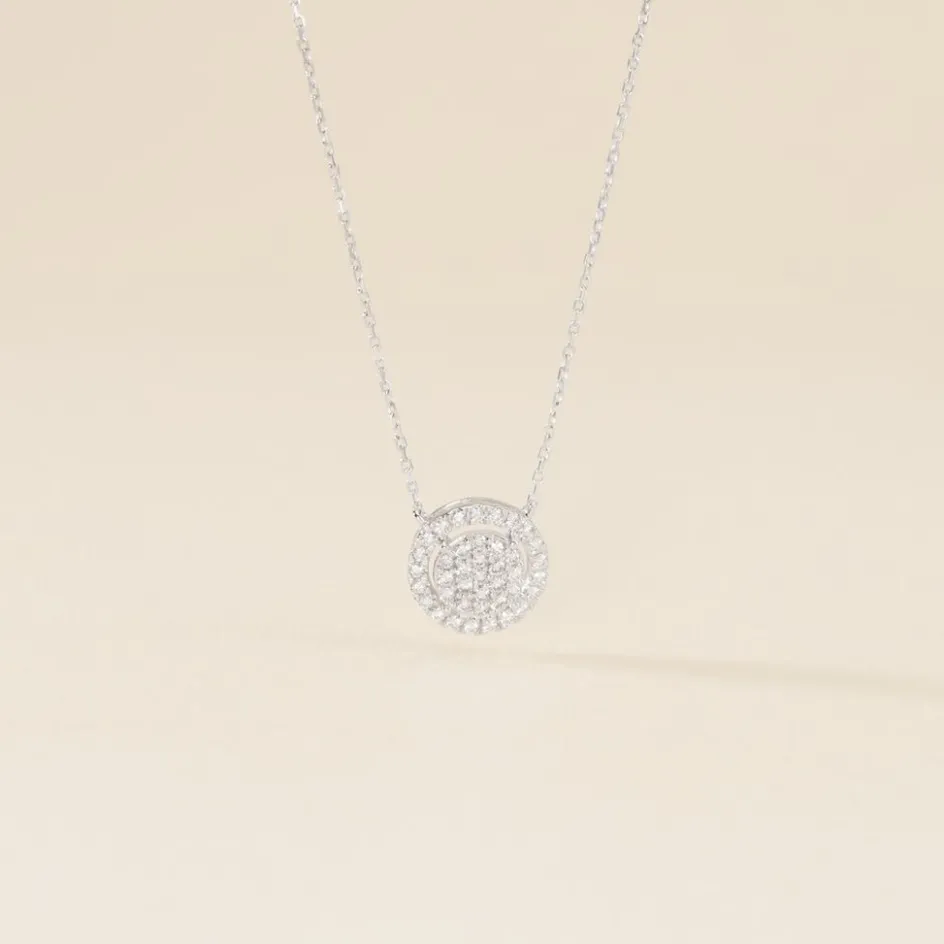 Collier Or Blanc 750/1000 Entourage Diamants Synthétiques Maille Forçat 40+5cm