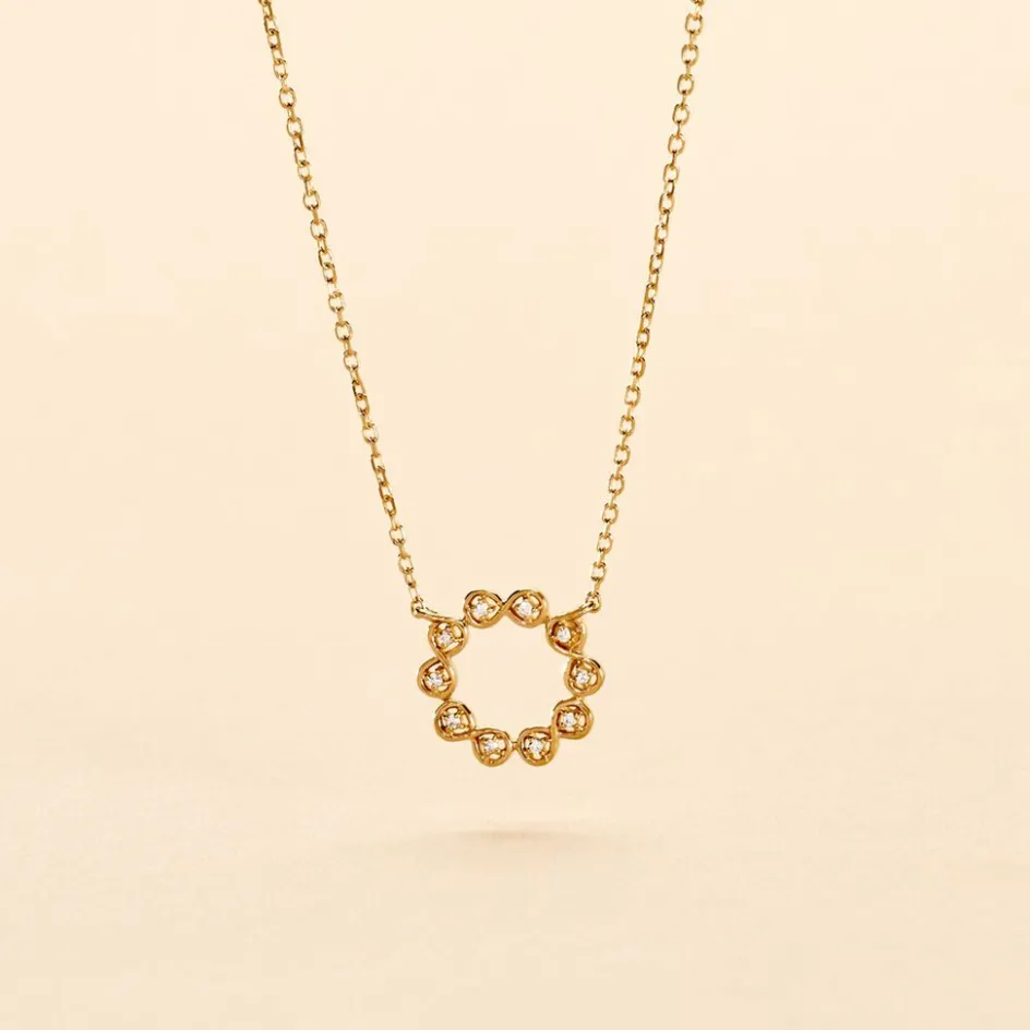 Collier Or Jaune 375/1000 Motif Cercle Rond Diamants Maille Forcat 40+2cm