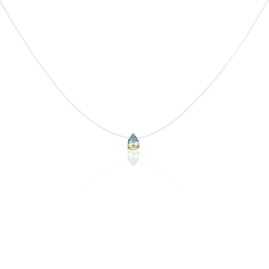 Collier Or Jaune 375/1000 Fil De Nylon Pendentif Forme Poire Topaze Serti Griffes 38+2+2cm