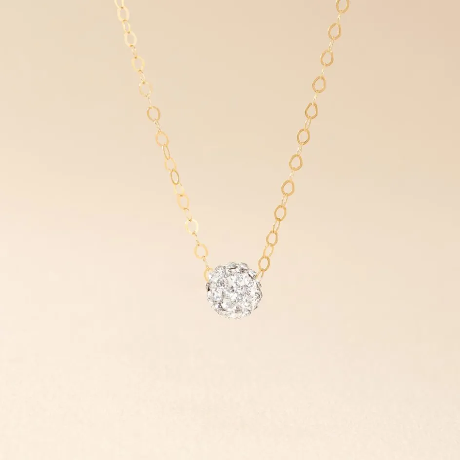 Collier Or Jaune 375/1000 Boule Cristal 7mm Maille Forcat 42+3cm