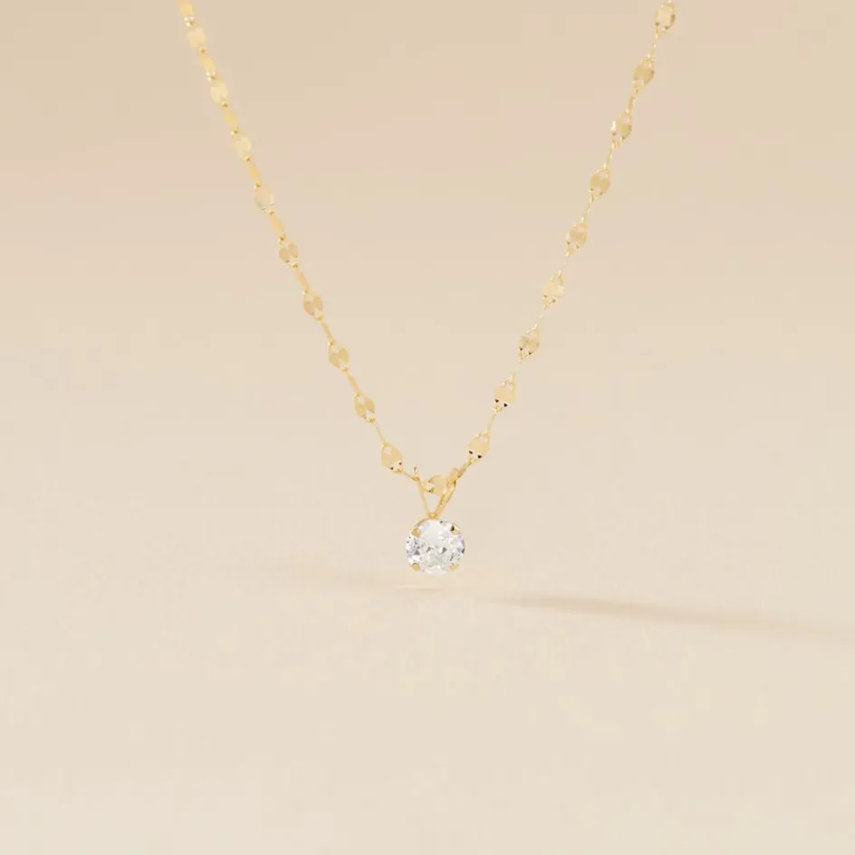 Collier Or Jaune 375/1000 Oxyde De Zirconium Serti Griffes Maille Lumina 42cm