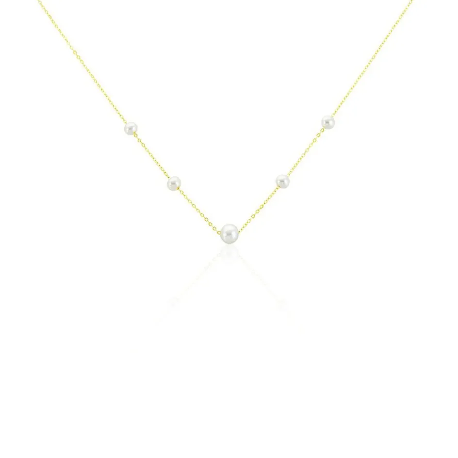 Collier Or Jaune 375/1000 5 Perles De Culture 4-5.5cm Percée Maille Forçat 42cm