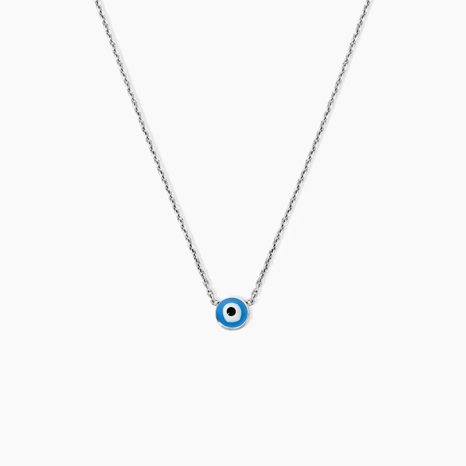 Collier Argent Blanc 925/1000 艙il Grec Email Bleu Maille Forcat 42+3cm