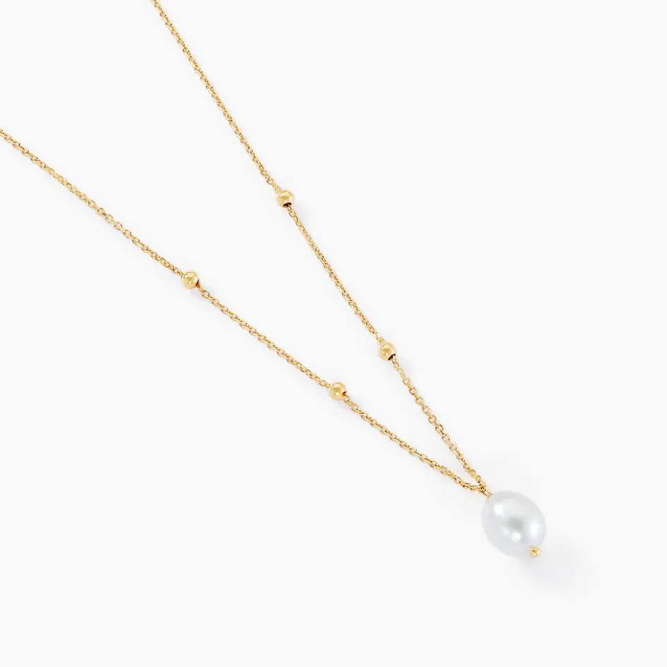 Collier Or Jaune 375/1000 1 Perle De Culture Ovale 8×6.5mm Maille Forcat Boules 40+2cm