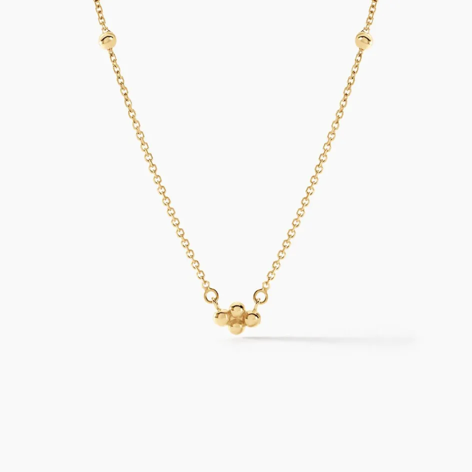 Collier Or Jaune 375/1000 Motif Grappe Centrale 4 Boules Chaine Alternance 2 Boules Maille Jaseron 40+2cm