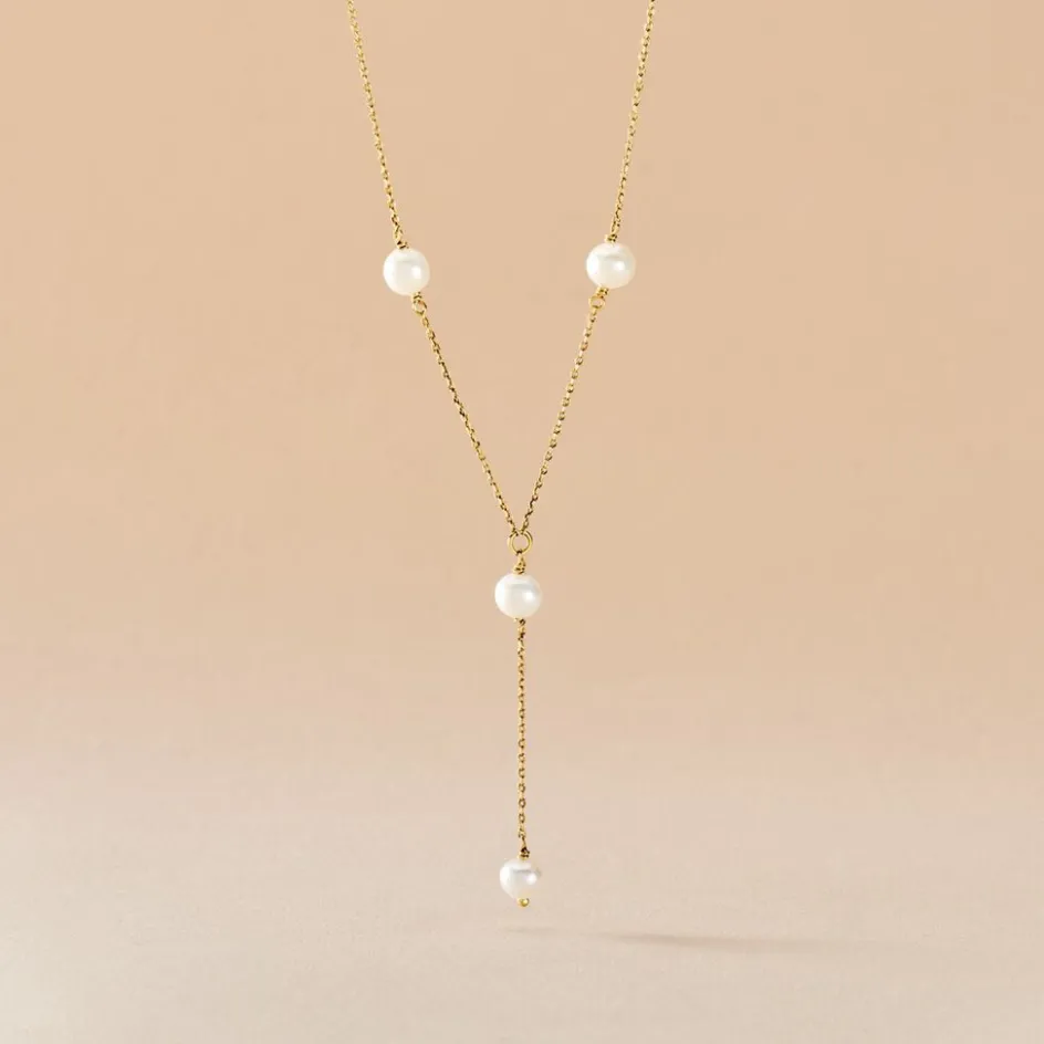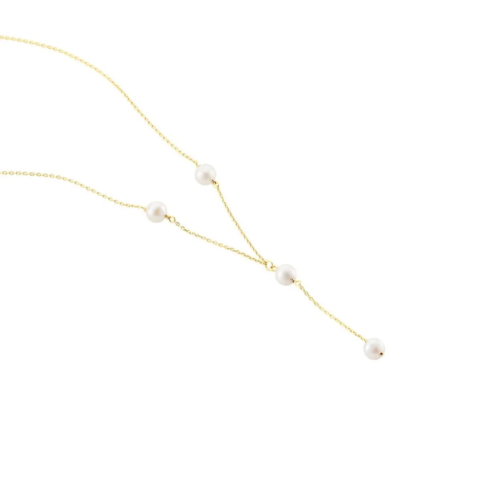 Collier Or Jaune 375/1000 4 Perles De Culture Rondes Blanches 5mm Maille Forçat 42cm