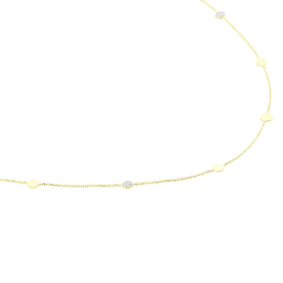 Collier Or Jaune 375/1000 Pastilles Glitter Argentees Maille Jaseron 40+2cm