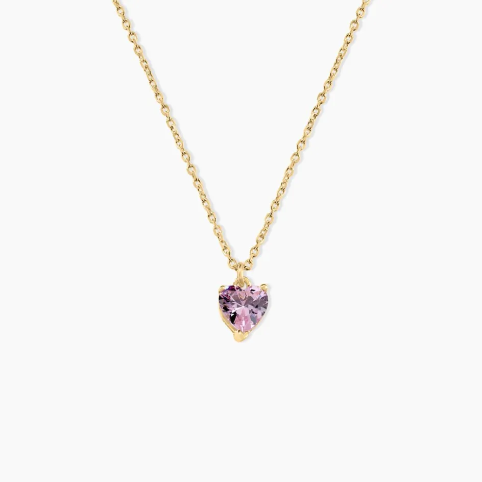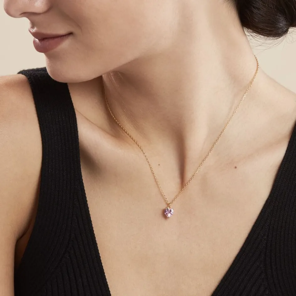 Collier Plaque Or Jaune C艙ur Serti Griffes Oxyde De Zirconium Rose Maille Forcat 42+3cm