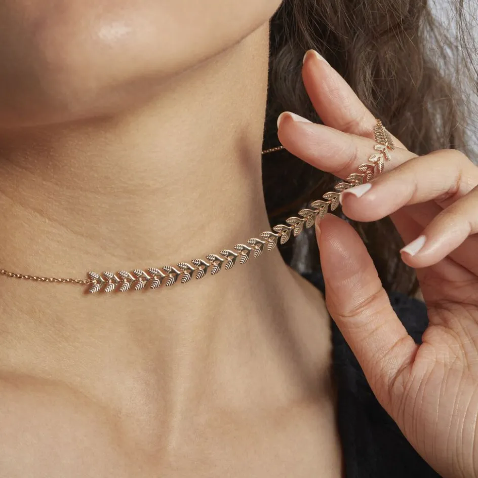 Collier Plaque Or Jaune Motifs Feuilles 42cm