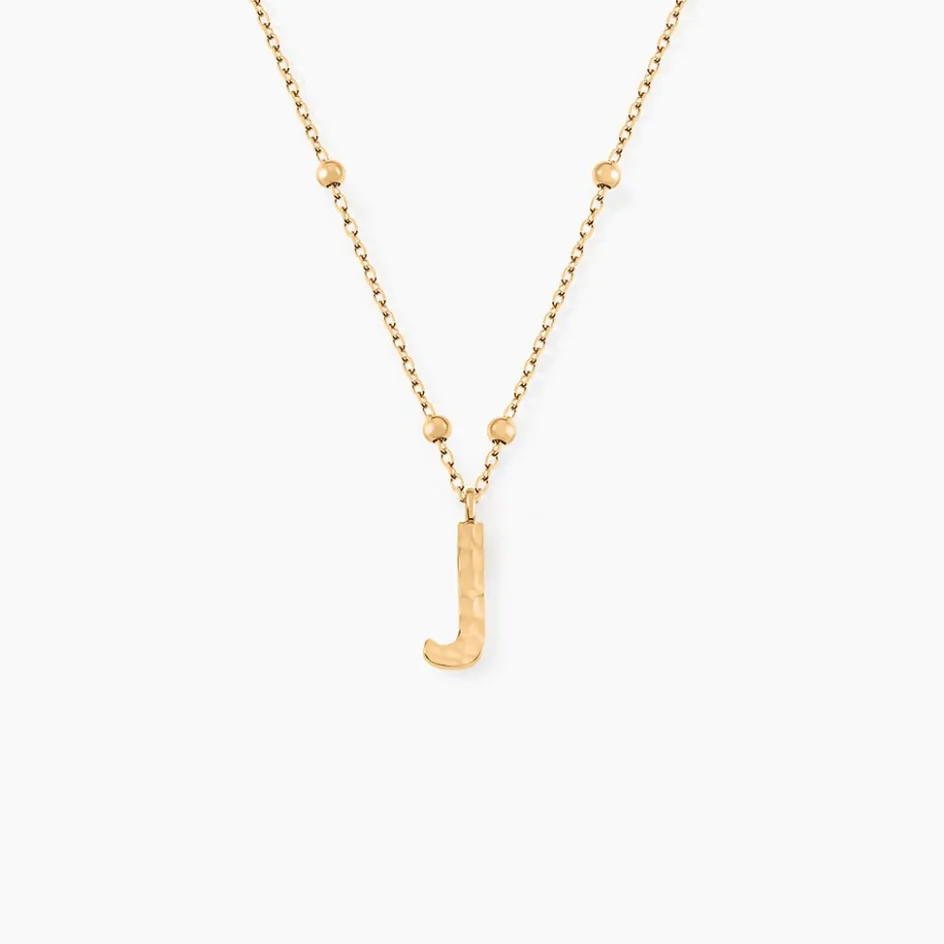 Collier Plaque Or Jaune Lettre J Martelee Et Petites Boules Chaine Maille Forcat Longueur 45cm