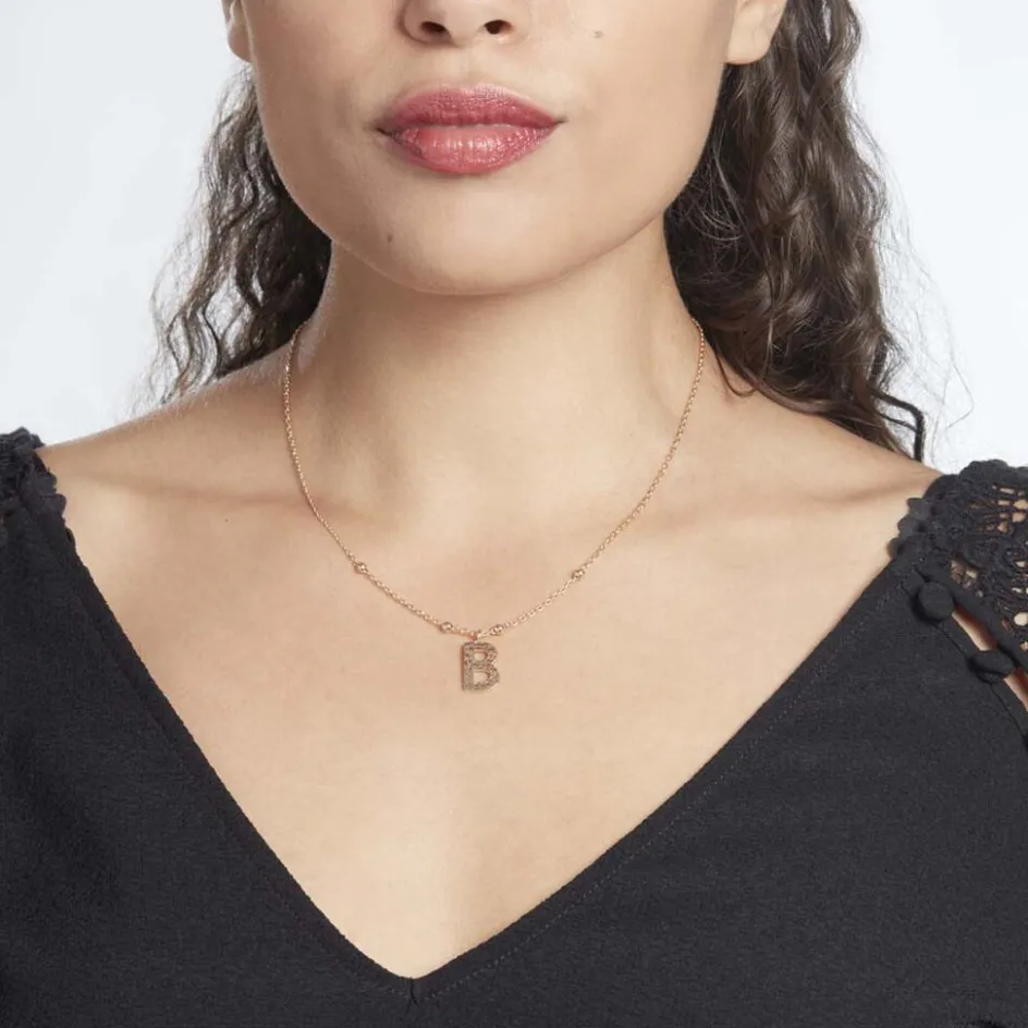 Collier Plaque Or Jaune Lettre B Martelee Et Petites Boules Chaine Maille Forcat Longueur 45cm