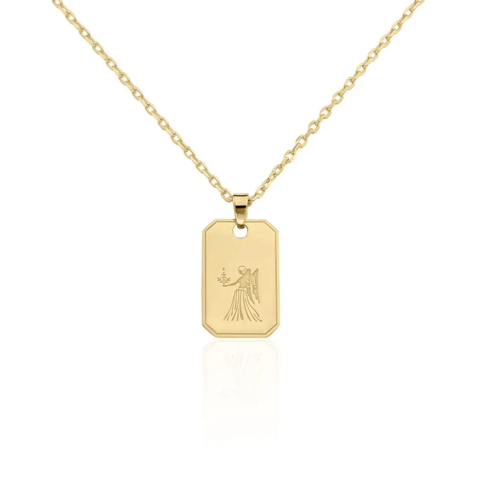 Collier Plaqué Or Jaune Plaque Gravee Signe Astrologique Vierge Maille Forcat 50cm