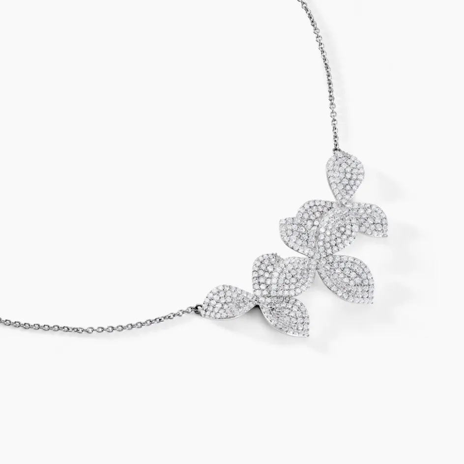 Collier Argent Blanc 925/1000 3 Fleurs Pavage Oxydes De Zirconium Maille Forçat 42+3cm