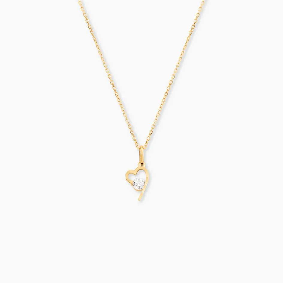 Collier Or Jaune 375/1000 Et Oxyde De Zirconium Central Motif C艙ur 42cm