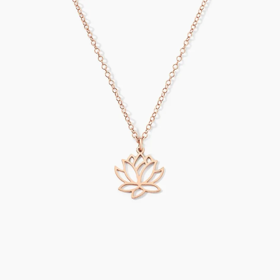 Collier Argent Rose 925/1000 Fleur De Lotus Maille Forcat 42cm