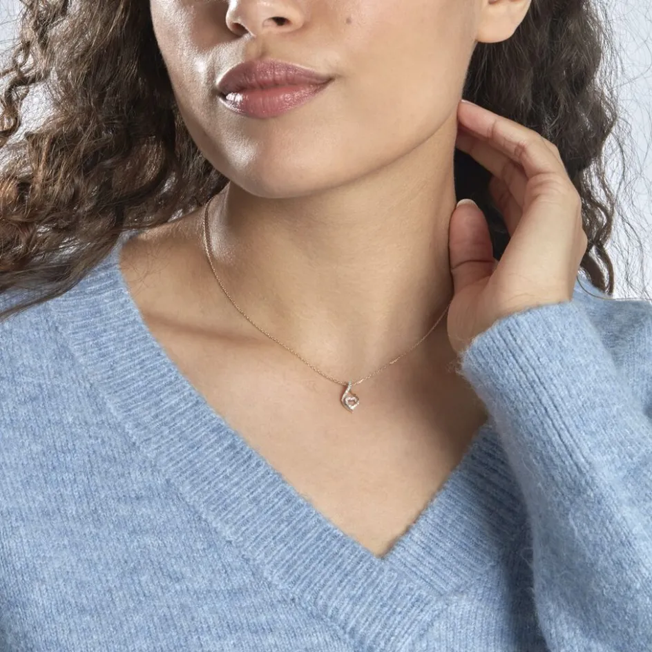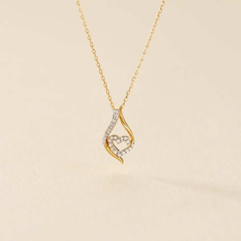 Collier Or Jaune 375/1000 Forme C艙ur Pavage Diamants 42cm