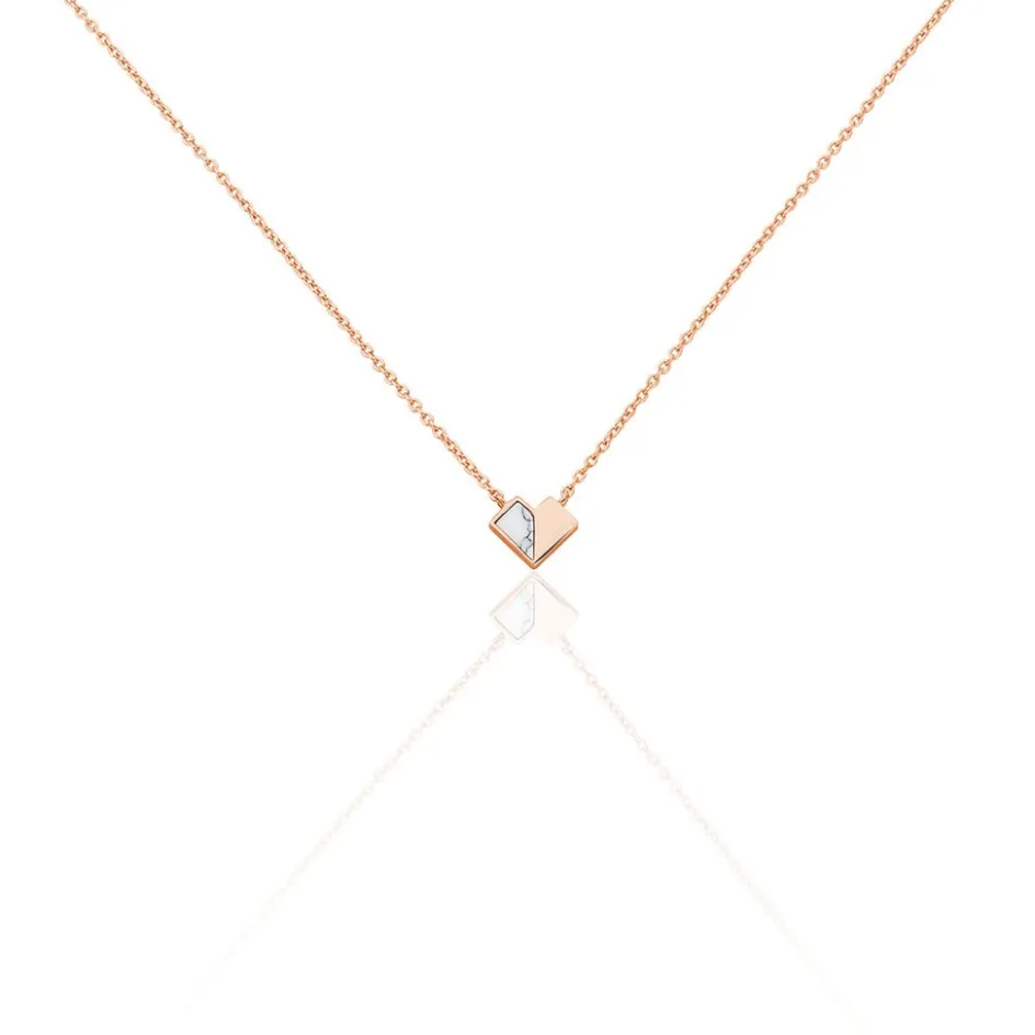 Collier Argent Rose 925/1000 Motif C艙ur Geometrique Turquoise Blanche 38cm