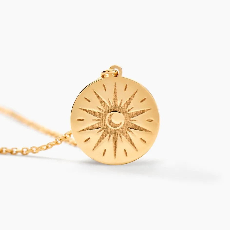 Collier Or Aune 375/1000 Pastille Soleil Et Lune Maille Jaseron 40+2cm