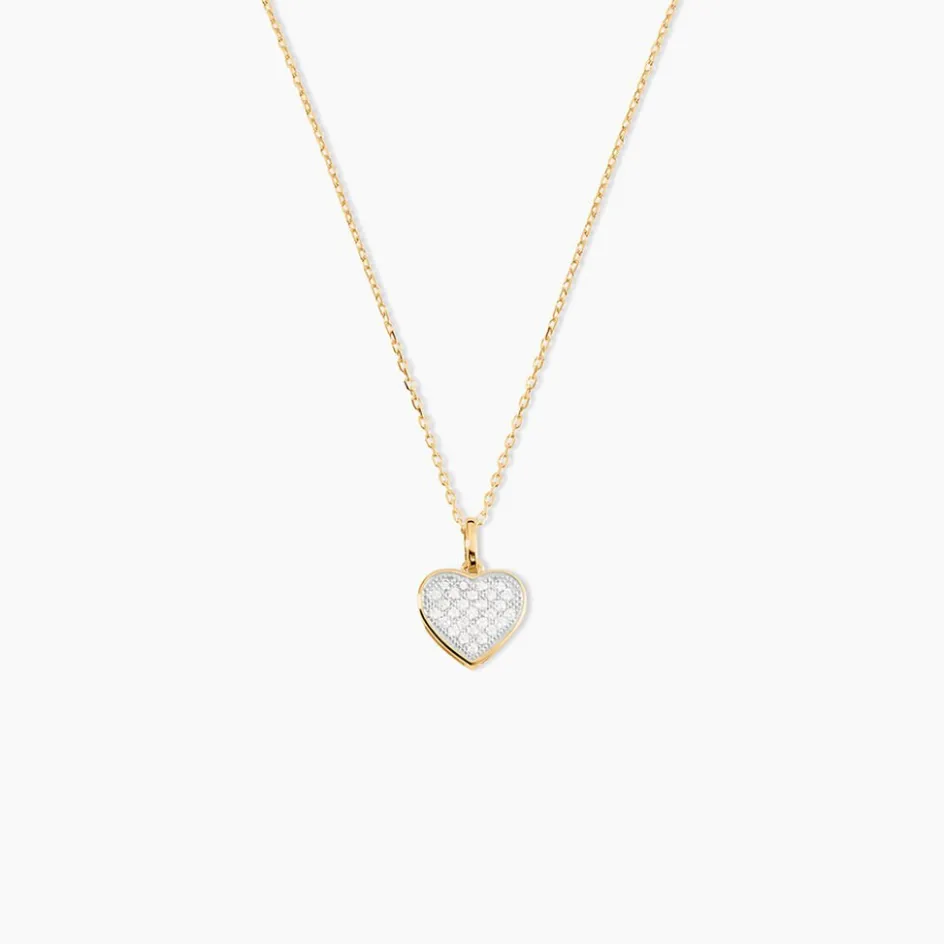 Collier Or Jaune 375/1000 C艙ur Oxydes De Zirconium 42cm